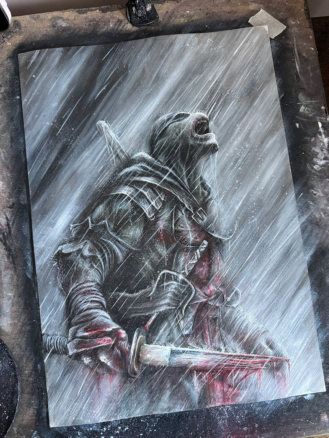 Lyra Rembrandt Polycolor Pencil on Winsor and Newton 230gsm Smooth Paper with Winsor Newton Designers Gouache for the highlights. Roughly 30 hours of work. Drawing comes in a Cellophane wallet packed inside a reinforced cardboard packet.