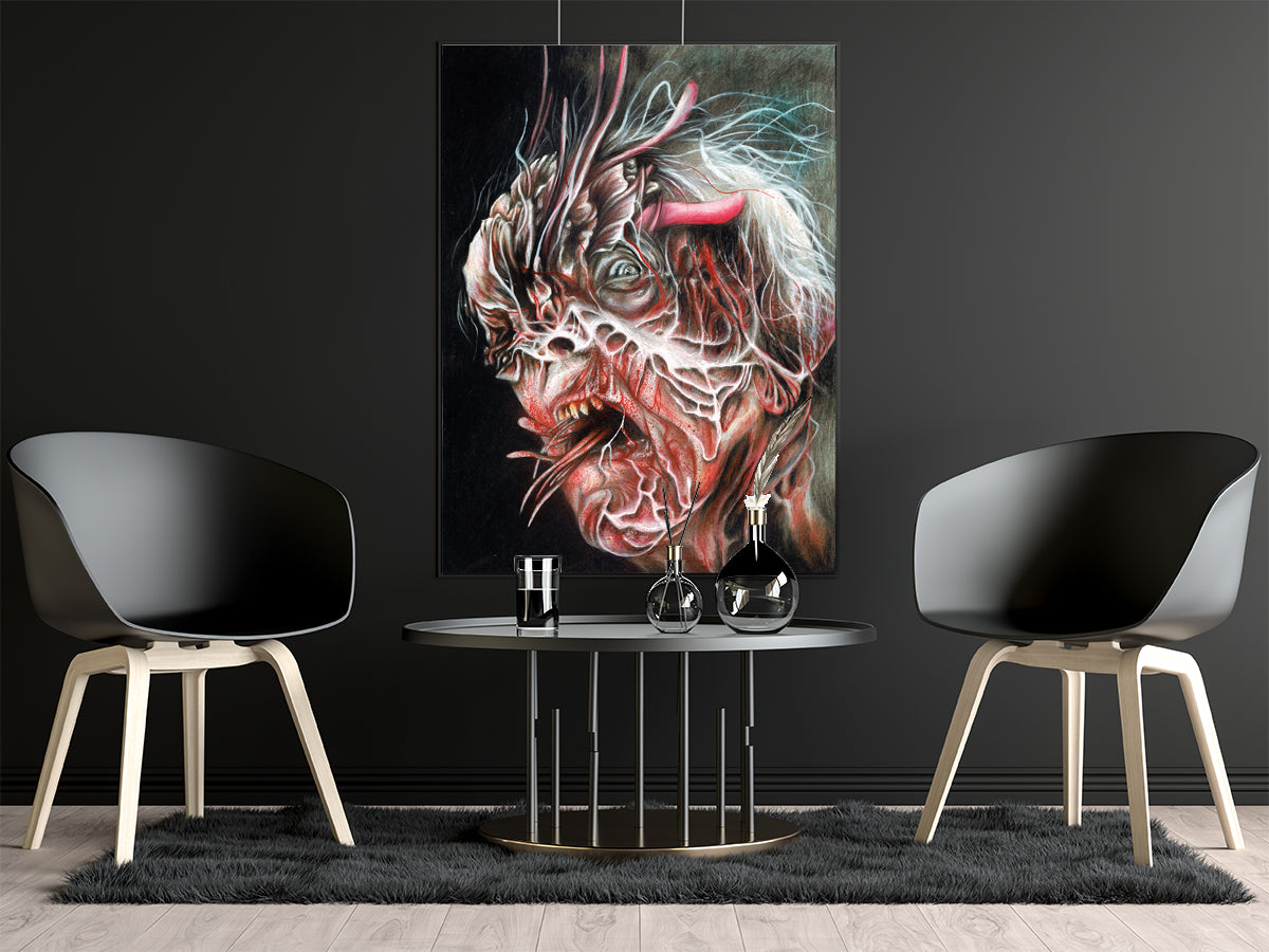 This is a Printed reproduction of a Hand Drawing by Wil Shrike. The Original Drawing was produced with Lyra Rembrandt Polycolor Pencil on Strathmore Grey Toned Paper.